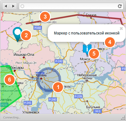 Динамические объекты нужны для выделения областей, добавления на карту маркеров и т.д. Примеры использования: